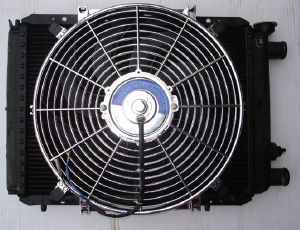 What Size Do I Need? To judge what size fan is ideal, first consider whether you are going to mount it in front or behind the radiator, then measure the available space (which is many instances will be the width of the radiatior). The bigger the fan, the better as the more cooling is provided - the engine will not be overcooled as these should should operate in conjunction with a thermostatic controller so only power up as and when required. Please note that a 7" fan is too small to use as the main radiator cooling fan on any vehicle above 900cc - these are usefully employed as twins or in conjunction with the main fan or as heater/air conditioner blowers, or for mounting to an oil cooler. |